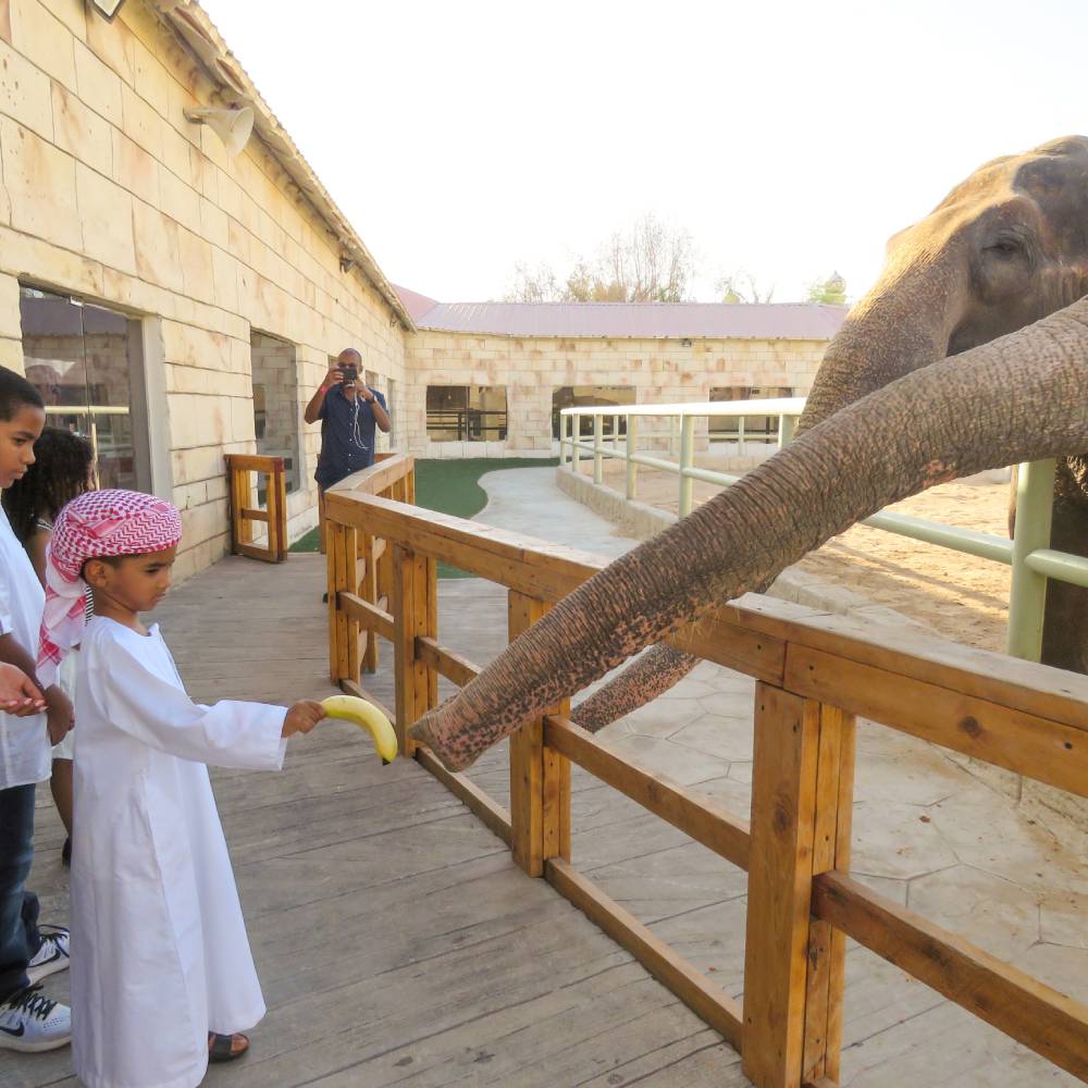 Emirates Park Zoo offers visitors the opportunity to feed Madu and Rada, the Asian elephants, as part of an educational and interactive experience. Visitors can purchase elephant food from the zoo and feed the elephants themselves, under the supervision of experienced handlers. The feeding provides visitors an opportunity to learn about Asian elephants, their habitat, and their diet. Visitors can learn about the conservation efforts being made to protect them.