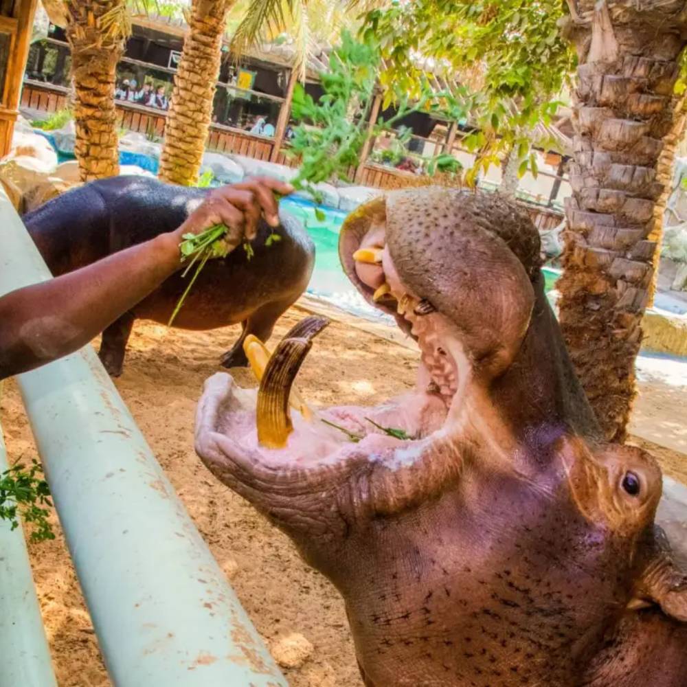 Come and experience the thrill of feeding one of the world’s largest and most fascinating mammals with our hippo feeding experience at Emirates Park Zoo!