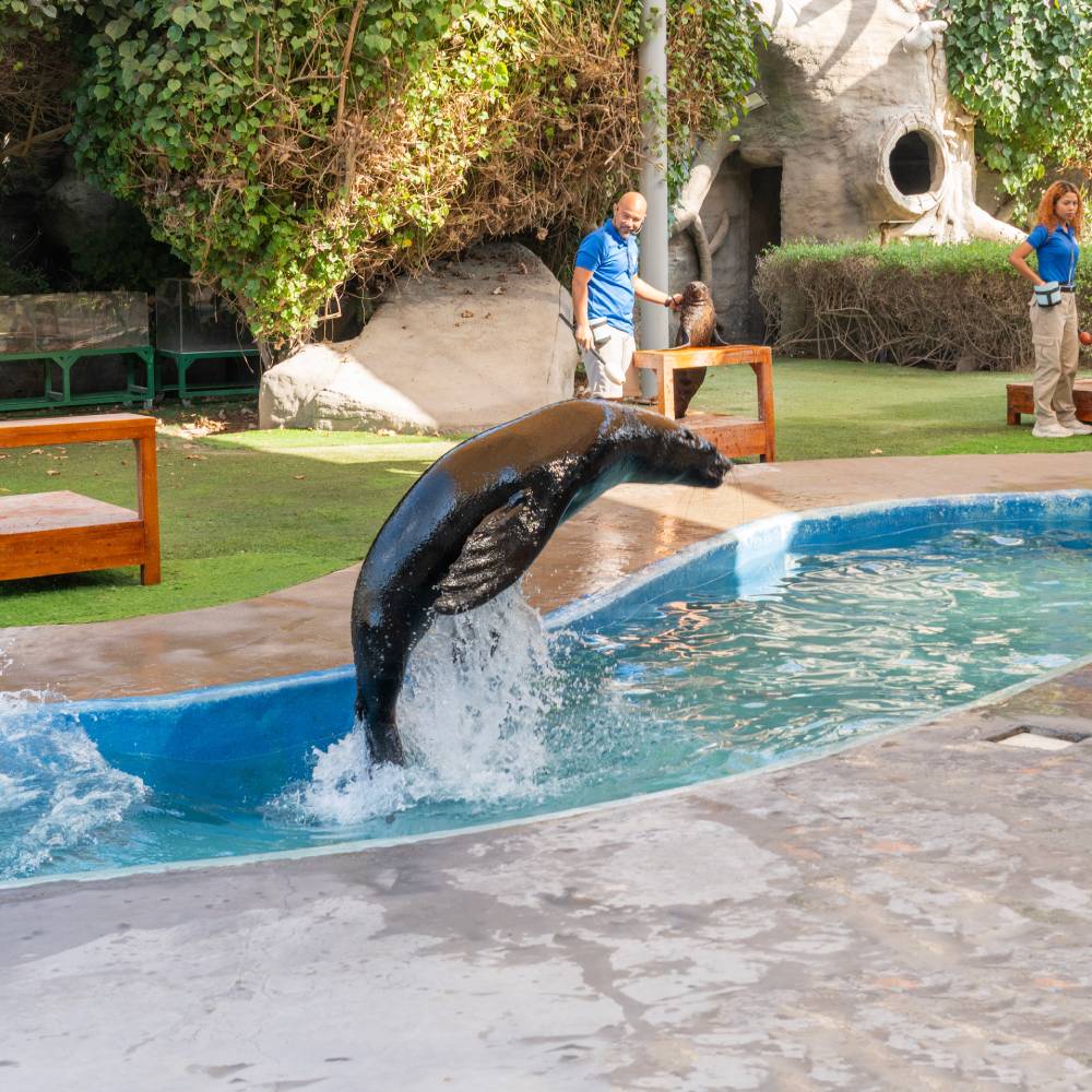 The sea lion presentation at Emirates Park Zoo and Resort offers visitors an engaging and educational experience. During the session, staff members highlight the sea lion’s natural behaviours and impressive abilities through a series of interactive demonstrations.